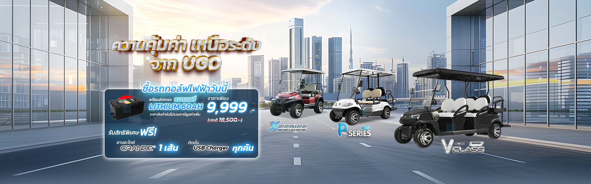 UGO รถกอล์ฟไฟฟ้าคุณภาพสูง นำเข้าแบรนด์ชั้นนำจาก USA เช่น คลับคาร์ (นำเข้า USA) แกรนเด (GRANDE) อีซีโก (นำเข้า USA) ดำเนินธุรกิจมากว่า 22 ปี มุ่งส่งเสริมการใช้รถกอล์ฟและรถไฟฟ้าเพื่อสังคมไทย พร้อมพัฒนาเทคโนโลยีอย่างต่อเนื่อง ทั้งในแง่ของแบตเตอรี่ การชาร์จ ระบบการขับเคลื่อน และระบบความปลอดภัย เพื่อให้รถไฟฟ้าเป็นส่วนหนึ่งของการขับเคลื่อนสังคมแห่งการพัฒนาที่ยั่งยืน