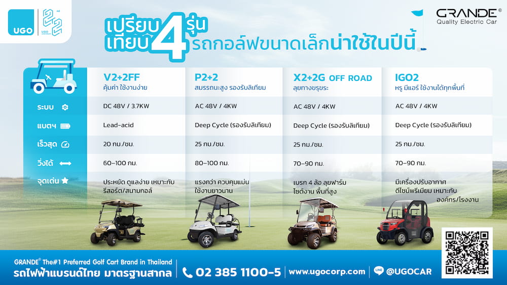 หากท่านมีความสนใจเรื่องรถกอล์ฟ รถไฟฟ้า มือหนึ่ง มือสอง บริการเช่า หรืออะไหล่ สามารถติดต่อและสอบถาม UGO เราพร้อมให้บริการจำหน่ายรถกอล์ฟไฟฟ้า และบริการให้เช่ารถกอล์ฟ ระยะสั้น-ระยะยาว กับทีมงานผู้เชี่ยวชาญเรื่องรถกอล์ฟ ยินดีให้คำปรึกษาแก่ท่านได้ฟรี ไม่มีค่าใช้จ่าย เพียงแอด LINE : @ugocar