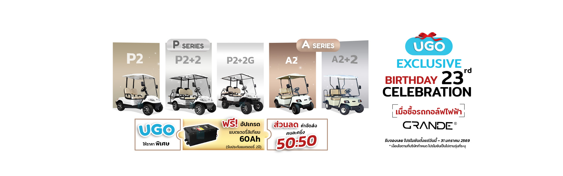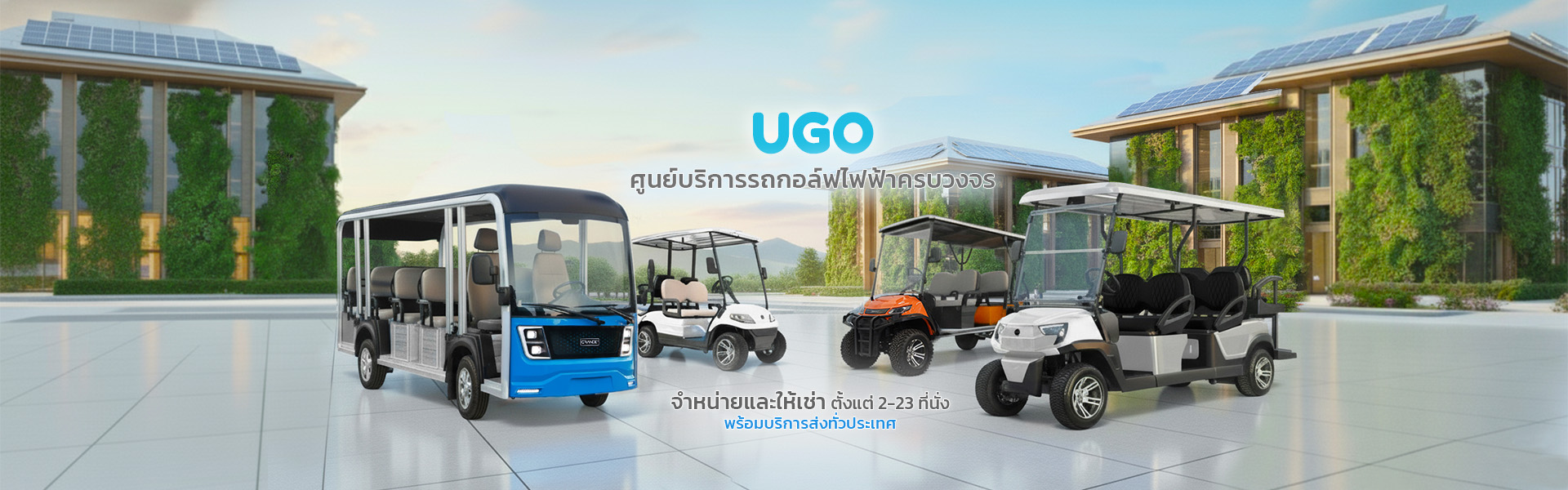 UGO รถกอล์ฟไฟฟ้าคุณภาพสูง นำเข้าแบรนด์ชั้นนำจาก USA เช่น คลับคาร์ (นำเข้า USA) แกรนเด (GRANDE) อีซีโก (นำเข้า USA) ดำเนินธุรกิจมากว่า 22 ปี มุ่งส่งเสริมการใช้รถกอล์ฟและรถไฟฟ้าเพื่อสังคมไทย พร้อมพัฒนาเทคโนโลยีอย่างต่อเนื่อง ทั้งในแง่ของแบตเตอรี่ การชาร์จ ระบบการขับเคลื่อน และระบบความปลอดภัย เพื่อให้รถไฟฟ้าเป็นส่วนหนึ่งของการขับเคลื่อนสังคมแห่งการพัฒนาที่ยั่งยืน