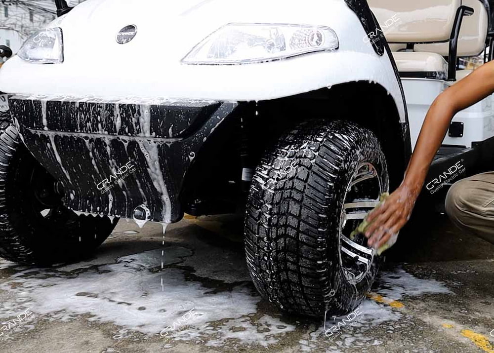 สำหรับผู้ใช้งานรถกอล์ฟ อาจมีข้อสงสัยว่า รถกอล์ฟไฟฟ้าสามารถล้างทำความสะอาดได้มากแค่ไหน เพราะกังวลว่าน้ำจะกระทบกับระบบวงจรไฟฟ้าต่าง ๆ ในรถได้ ซึ่งสามารถตอบได้ว่า รถกอล์ฟไฟฟ้าสามารถล้างทำความสะอาดได้ตามปกติ เพราะยามเมื่อใช้งานจริง รถกอล์ฟอาจมีช่วงที่จะต้องโดนฝนและโดนโคลนบ้างอยู่แล้ว ดังนั้น ผู้ใช้งานสามารถใช้น้ำสะอาดในการทำความสะอาดรถกอล์ฟเหมือนการล้างรถทั่วไปได้ โดยเฉพาะช่วงล่างต้องเน้นทำความสะอาดออกให้หมด เพราะหากมีสิ่งสกปรกสะสมอาจทำให้เกิดสนิมได้ง่าย